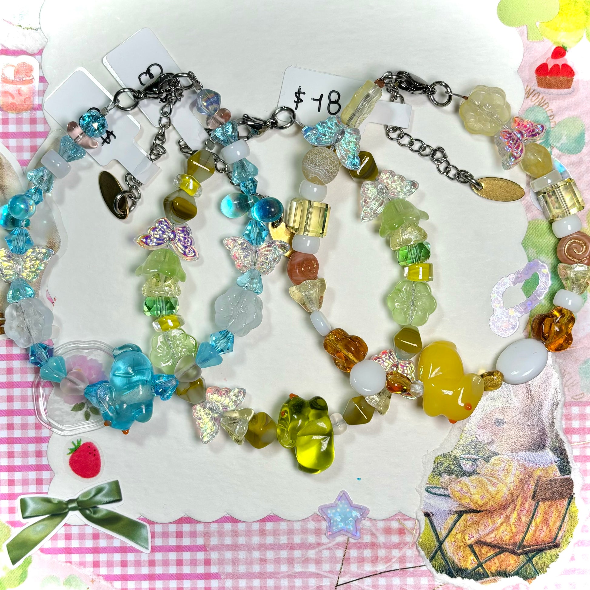 Handcrafted with glass, Czech, and sparkly beads, along with cute charms. Made with stainless steel findings and non-tarnish wire. ✨