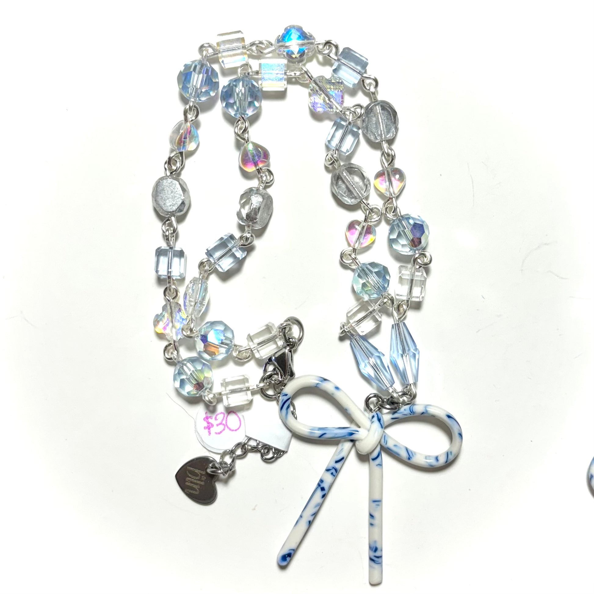made from fully crystal beads + glass beads! all findings are stainless steel + wire used for beads is non tarnish! 🩷