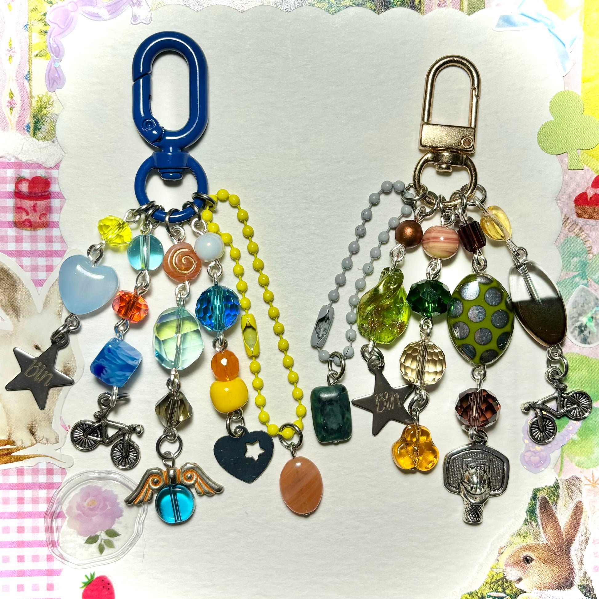 Stranger Things inspired keychains! made with glass beads, czech sparkly beads, acrylic beads, ceramic beads + more! with the cutest charms to describe the characters 🩸